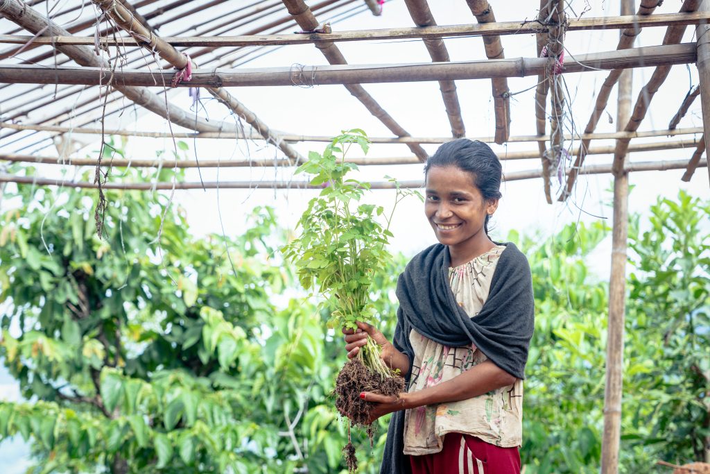 Today, with DCRL support, Kumar and several other farmers like him are successfully cultivating tomato, beans, bitter gourd, chayote (skush), turmeric, spinach, and ridge gourd in tunnel farms on land they never thought they could farm. Kumar believes his work has redefined his identity, from that of a low-wage labourer to an inspired farmer. He is now earning at least Rs. 150,000 each year. In the first year, Kumar’s family initiated vegetable farming in a single plastic tunnel and earned Rs. 60,000. From spending time looking for jobs to being busy throughout the year on his farm, Kumar’s life has changed dramatically. “I am happy that I am finally self-employed, but I am happier about the deep connection I now feel with this steep, rocky, and barren land that I call home.”