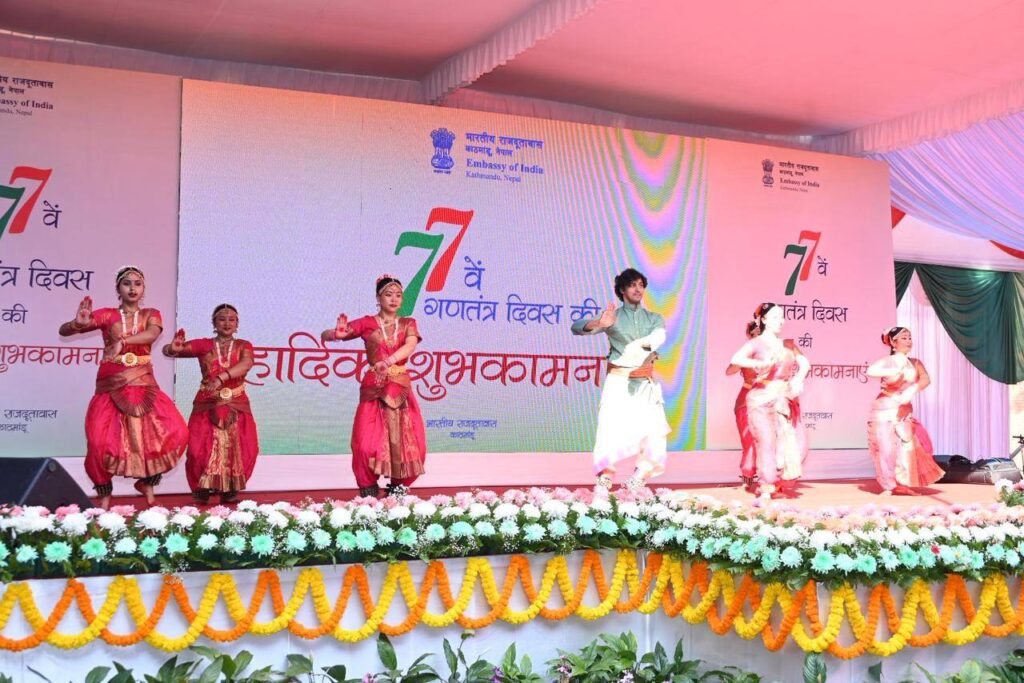 Kathmandu: The 77th Republic Day of India was celebrated with enthusiasm at the Embassy of India in Kathmandu on 26 January, with the participation of members of the Indian community, friends of India in Nepal, and embassy officials.