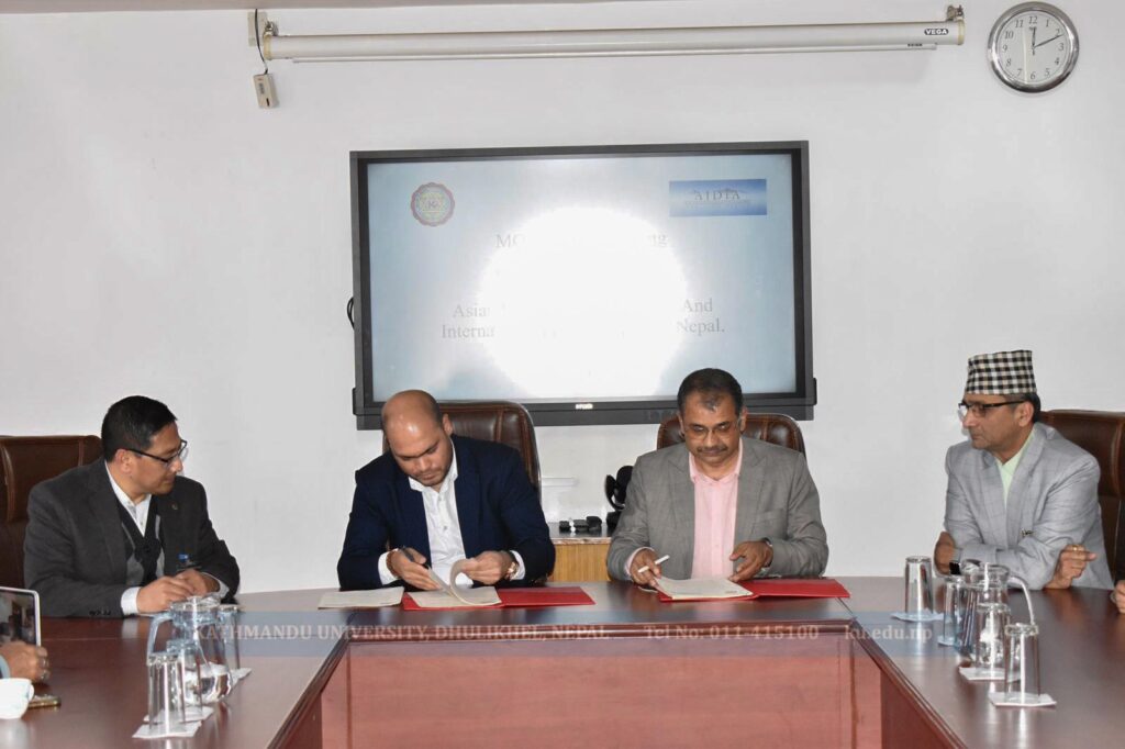 The agreement was formally signed on Wednesday by Dean of KU School of Arts, Uddhab Pyakurel, and AIDIA Founder Sunil KC.