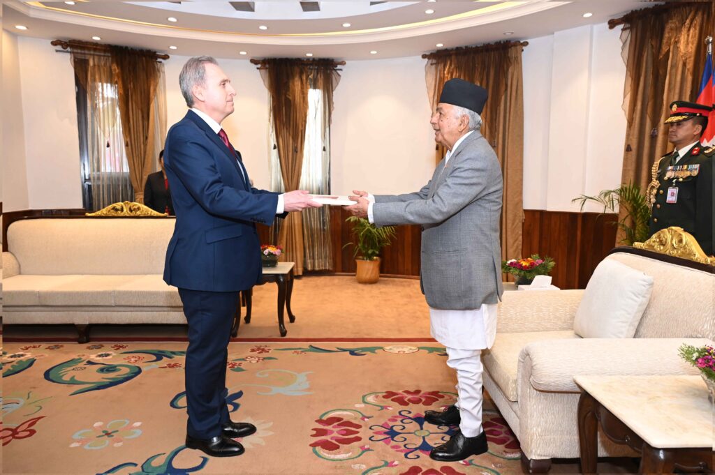 Kathmandu: Newly appointed five ambassadors to Nepal formally presented their letters of credence to President of Nepal Ram Chandra Paudel during separate special ceremonies held at the President’s Office, Sheetal Niwas, on February 24.
