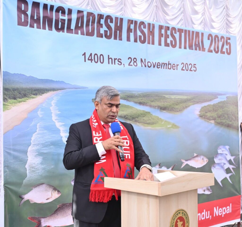 Kathmandu: The Embassy of Bangladesh in Kathmandu hosted the Bangladesh Fish Festival 2025 today at its premises on November 28. It brings together Ambassadors/Heads of Missions and diplomats based in Kathmandu, senior officials from various Ministries of the Government of Nepal, business leaders, members of Think Tanks and civil society, managers and executives of the luxury hotels, members of the media and so on. The event was graced by the Acting Foreign Secretary of Nepal, Krishna Prasad Dhakal.