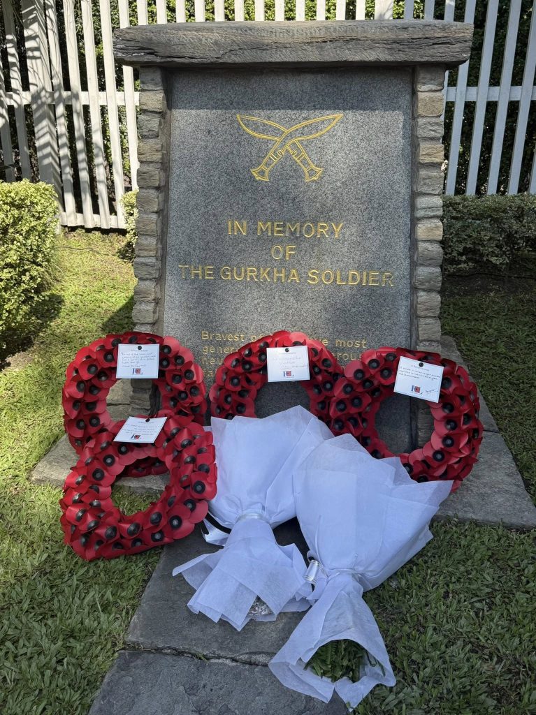 Wreaths were laid at the Gurkha Monument by Ambassador Rob Fenn, Chief of Army Staff General Ashok Raj Sigdel, Inspector General of Nepal Police Chandra Kuber Khapung, Defence Attaché Colonel Dan Rex, and Major Bal Krishna Rana, Chair of the Regimental Association Nepal (RAN).
