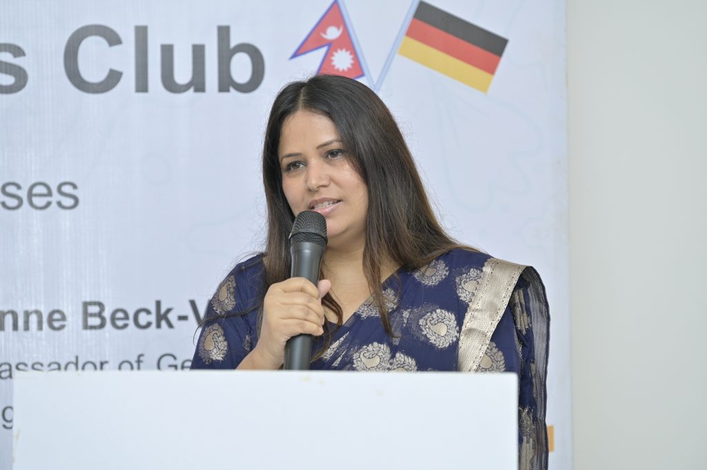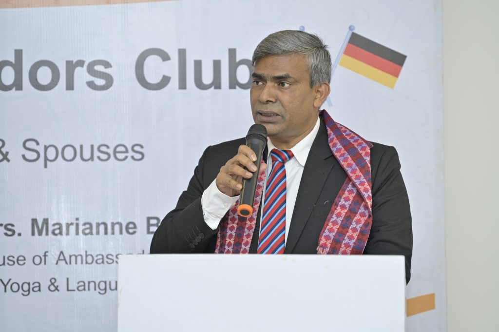 At the program, the attendees included both Ambassadors, the Bangladeshi and German Ambassadors, Spouse Marianne Beck-Volz, President of the Ambassadors Club Nepal, IRGDD, and The Diplomat Nepal, Amb. Dr. Sarmila Parajuli Dhakal; Publisher of The Diplomat Nepal magazine and Co-founder of the Ambassadors Club and IRGDD, Bimal Dhakal; Secretary-General of the South Asian Association for Regional Cooperation (SAARC), Amb. Md. Golam Sarwar; Head of the Europe Division at the Ministry of Foreign Affairs (MoFA), Nepal, Amb. Ganesh Prasad Dhakal; Head of the Central Asia, West Asia, and Africa Division at MoFA, Nepal, Amb. Ram Kaji Khadka; Country Representative of the Food and Agriculture Organization (FAO) of the United Nations to Nepal and Bhutan, Ken Shimizu; Country Representative of Deutsche Gesellschaft für Internationale Zusammenarbeit (GIZ) in Nepal, Paulina Campos; and Vice President of the Ambassadors Club Nepal and IRGDD, Amb. Kali Prasad Pokhrel.