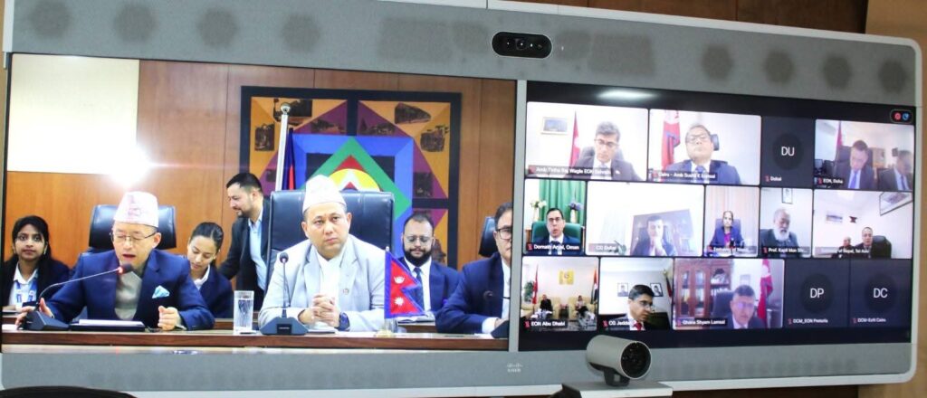 Kathmandu: The Ministry of Foreign Affairs organised a virtual interaction programme April 16 with Nepali diplomatic missions based in West Asia and Africa, focusing on service delivery, safety of Nepali nationals and strengthening economic diplomacy.