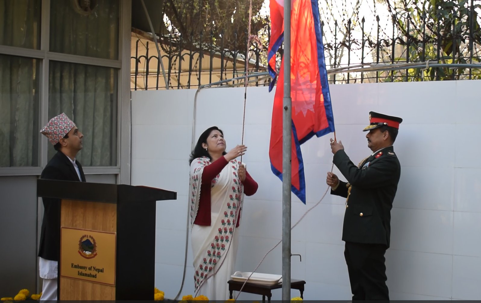 During the program, Nepal’s Ambassador to Pakistan hoisted the national flag and read out a message from Ram Chandra Poudel on the occasion of National Democracy Day.