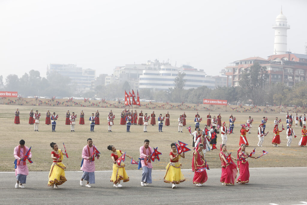 The program, organized by the National Democracy Day Main Celebration Committee, included a ceremonial salute by the Nepali Army in honor of President Paudel, who is also its Supreme Commander. First Lady Sabita Paudel was also present. Cultural performances such as tableaux, march-past, dances, and musical shows highlighted Nepal’s heritage.