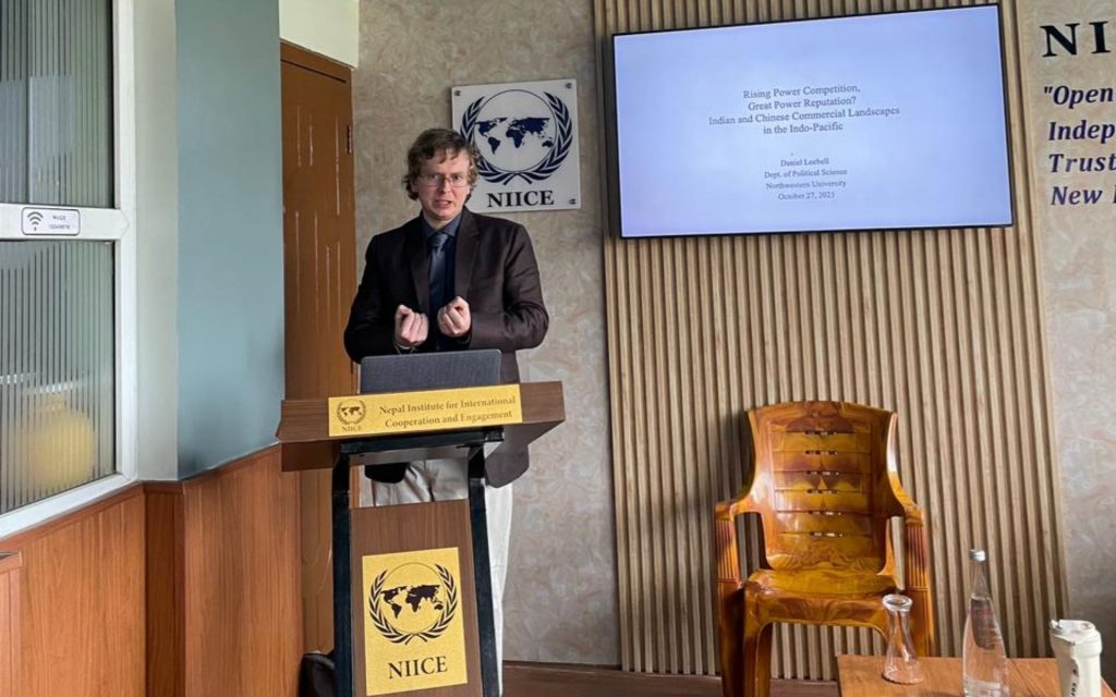 Kathmandu: The Nepal Institute for International Cooperation and Engagement (NIICE) organized a public lecture titled “Rising Power Competition: Indian and Chinese Commercial Landscapes in the Indo-Pacific” at the NIICE Seminar Hall in Hattiban, Lalitpur, on October 27.