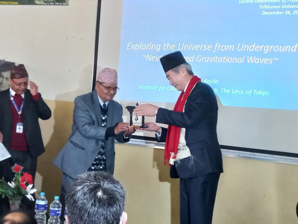On December 26, Professor Kajita delivered a lecture at the Central Department of Physics, Tribhuvan University. His lecture inspired researchers as well as young students aspiring to contribute to scientific knowledge and humanity.
