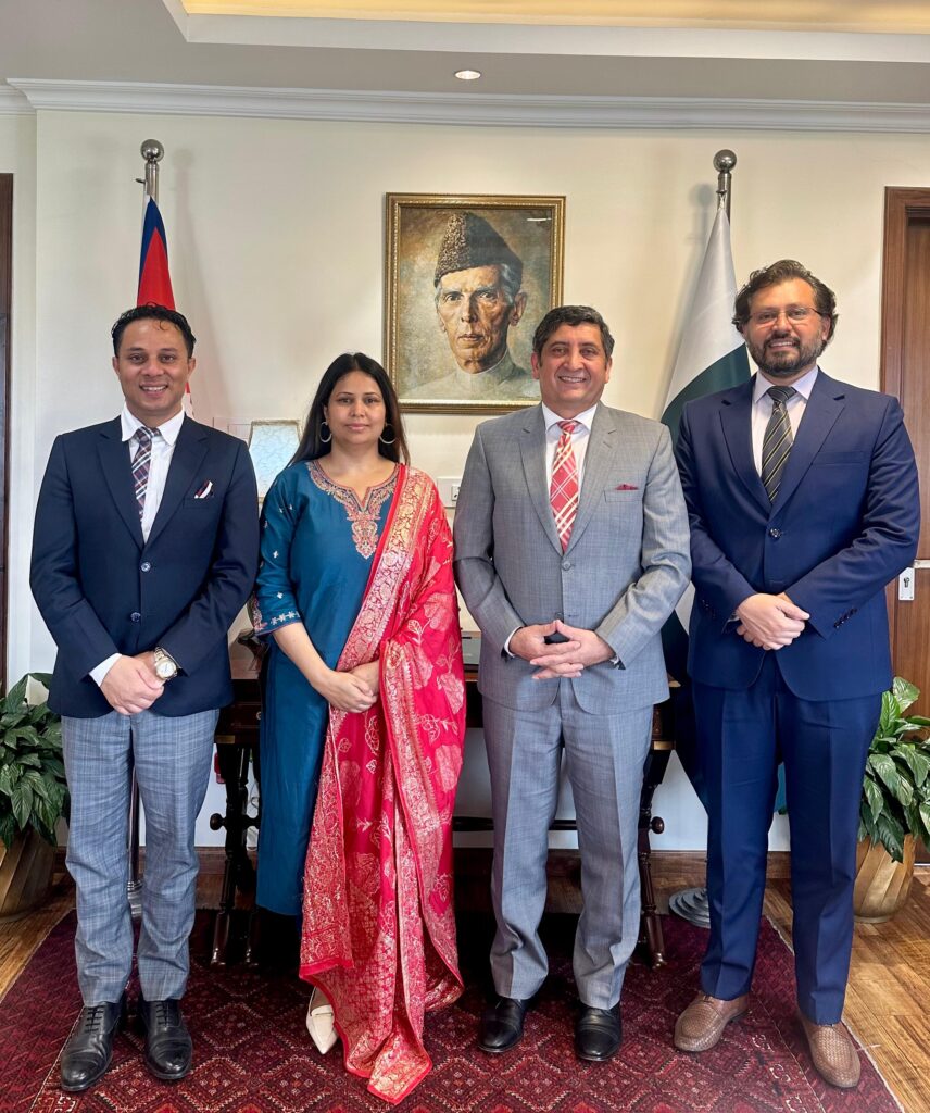 Kathmandu: Abrar H. Hashmi, Ambassador of Pakistan to Nepal, received Amb. Dr. Sarmila Parajuli Dhakal, Founder President of the Ambassadors Club Nepal, and Bimal Dhakal Publisher of The Diplomat Nepal magazine at the Embassy of Pakistan.
